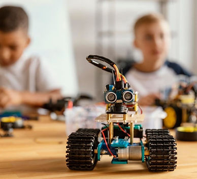 A robotics class with students building and programming robots, using cutting-edge technology, and engaging in hands-on experiments, problem-solving, and creative exploration.